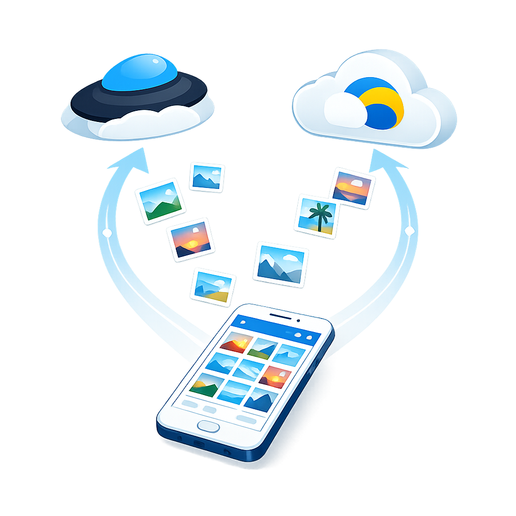 Освобождаешь место без потери фото. Всё сохраняется у тебя — мы файлы не храним. Удобно и спокойно.